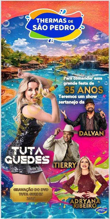 Celebrando duas décadas de uma trajetória marcada por talento, carisma e paixão pela música, Tuta Guedes apresenta um projeto especial e emocionante: o DVD "BARDEGA DA TUTA", será gravado no dia 19/04/2026, no Thermas de São Pedro.